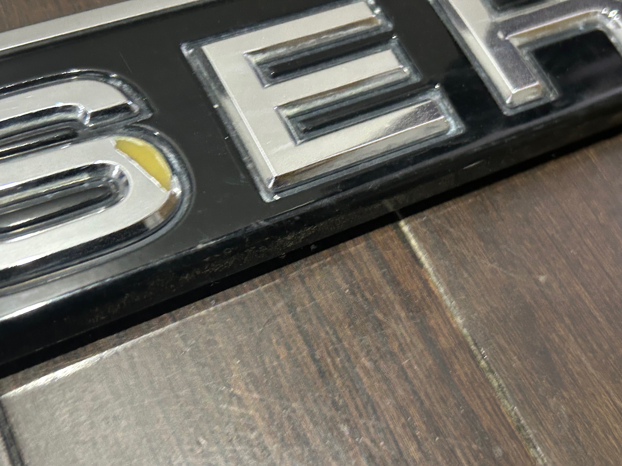 Structure is solid. Chrome shows peeling on the 'S' letter (see photo #4).